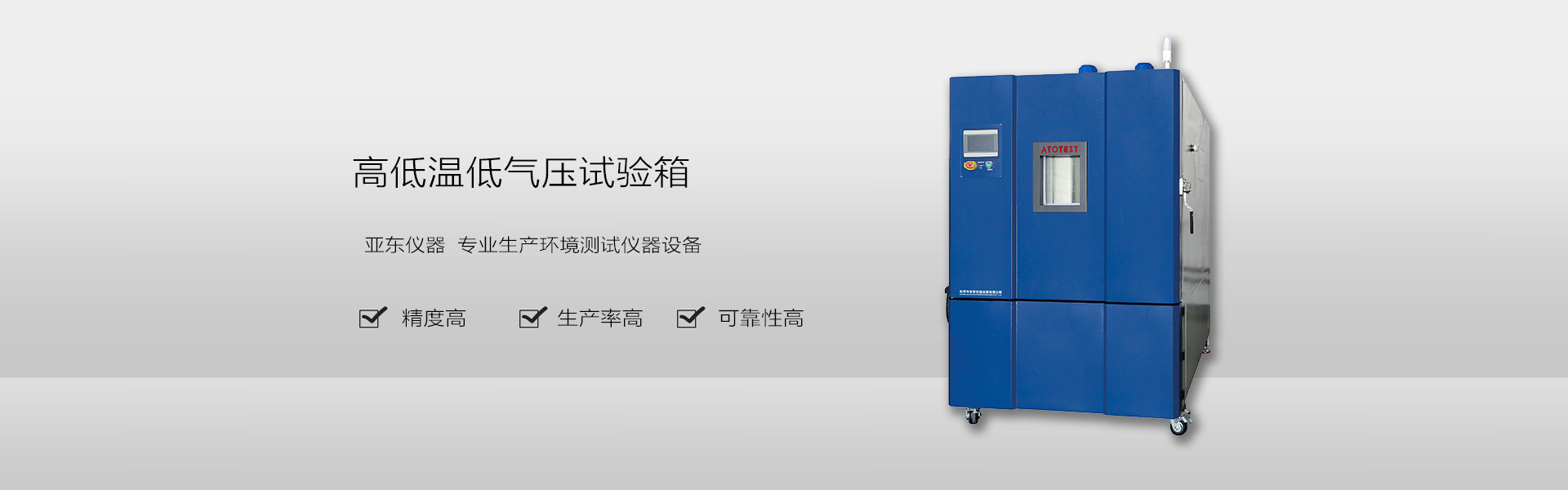 深耕于環(huán)境測(cè)試領(lǐng)域,主要生產(chǎn)恒溫恒濕箱、快速溫變箱、冷熱沖擊箱、老化試驗(yàn)箱、低氣壓試驗(yàn)箱等。